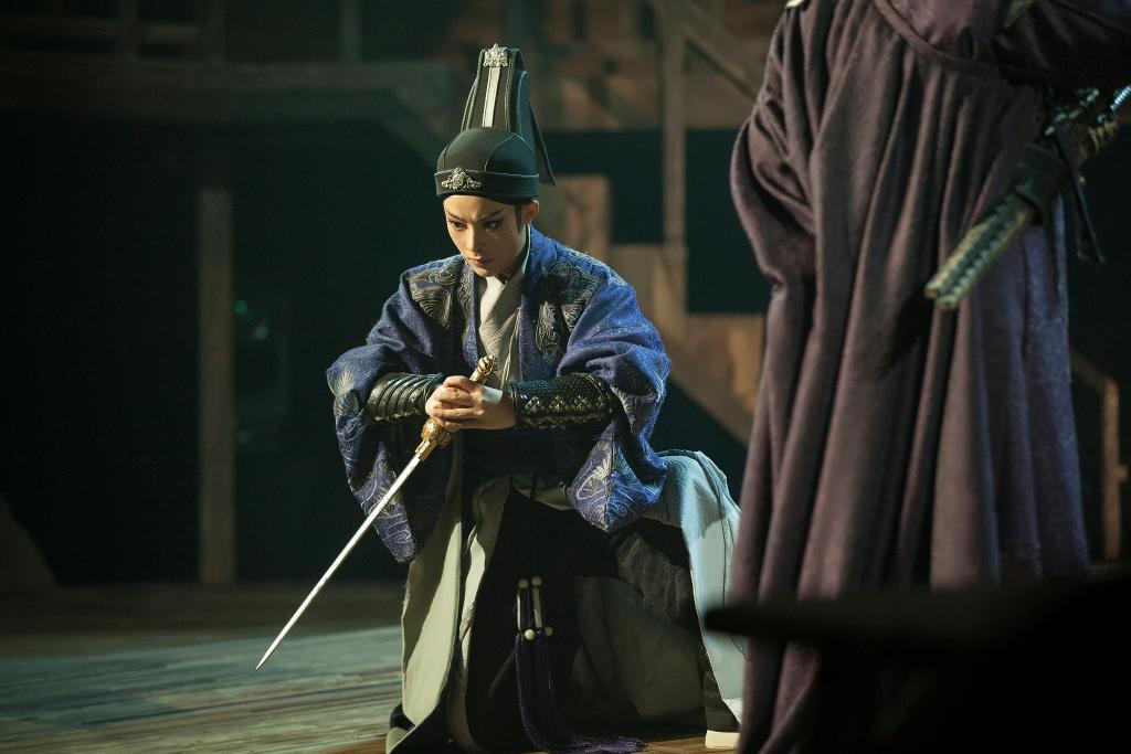 12月2日,《新龙门客栈》演出结束后三位主演返场。(新华网 夏越峤摄)
