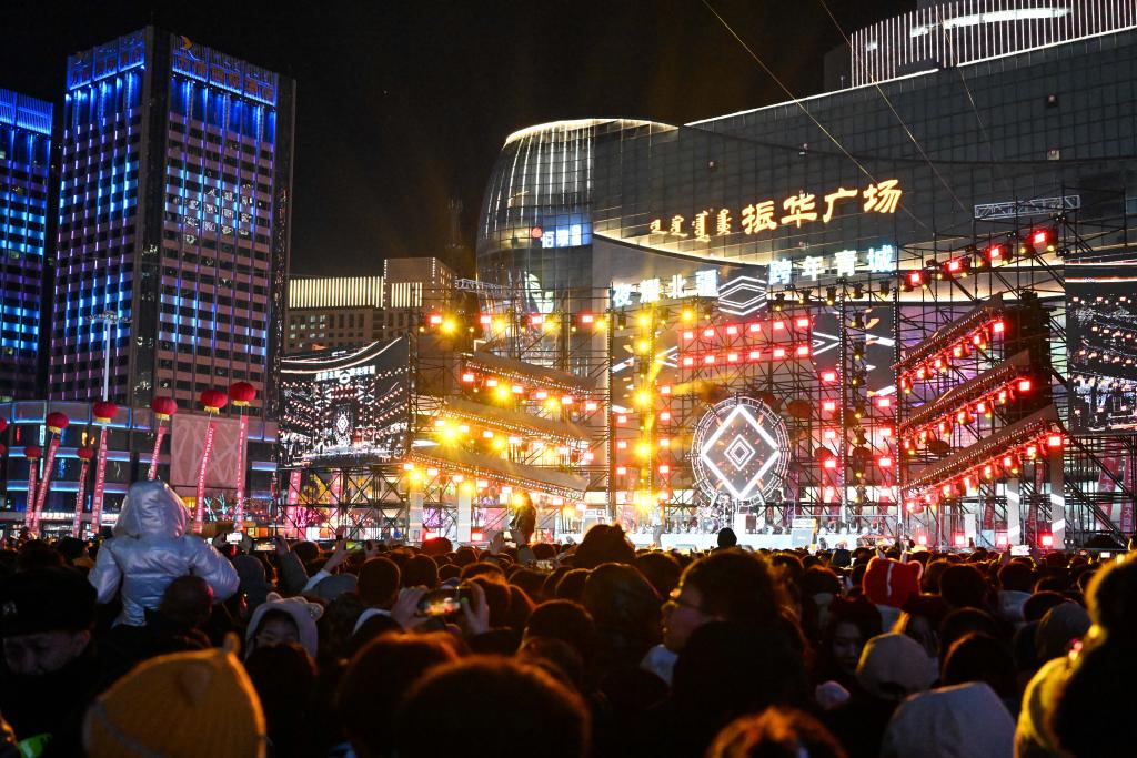2023年12月31日,市民在内蒙古呼和浩特市新华广场观看演出。新华社记者 贝赫 摄