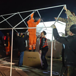 不光电力部门、消防部门、应急部门,记者在多个安置点走访看到,受灾群众积极主动,有自告奋勇为大家烹饪抓饭的,有帮救援人员搭建帐篷的,有维持秩序分发物资的……天气虽然寒冷,但每个人心里都暖暖的。