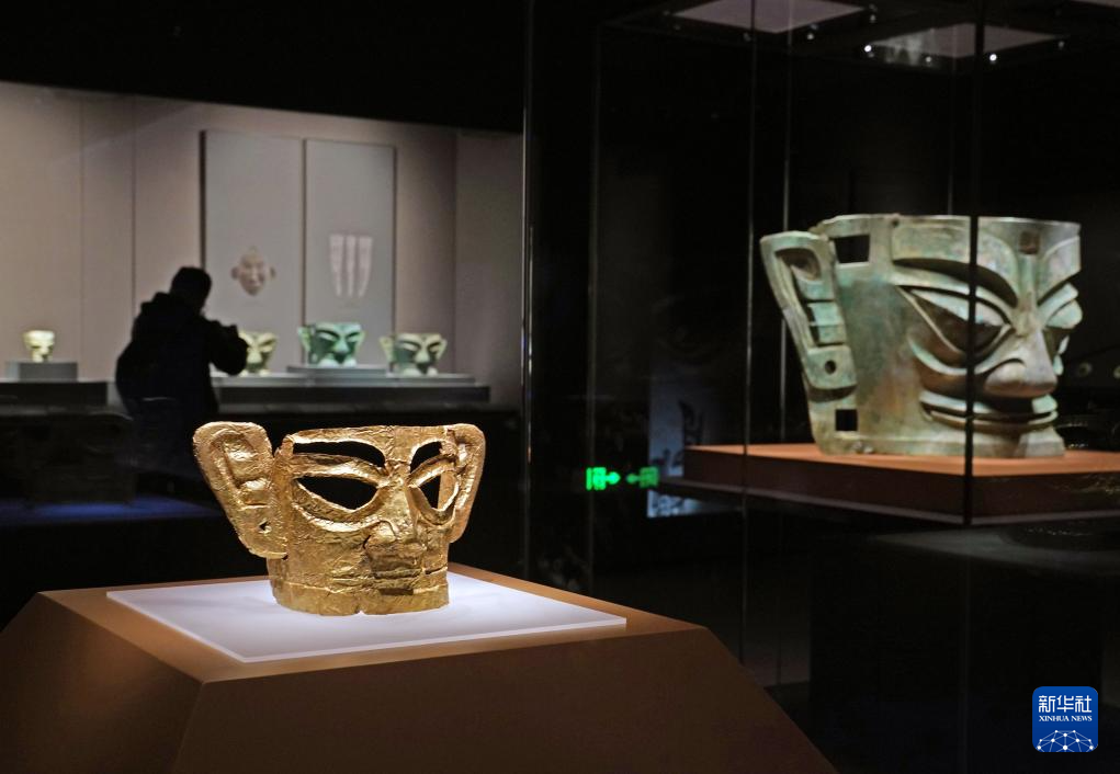 在“星耀中国——三星堆·金沙古蜀文明展”展厅里,四川广汉三星堆遗址出土的珍贵文物——金面具和竖披发青铜人像引人入胜。在约2000平方米的展厅空间里,上博以“天行乾道”“地势坤物”“人和明德”三个主题为线索,向海内外观众全面展示古蜀文明的独特魅力,沉浸式诠释中华文明发展的多元一体和开放包容特性。