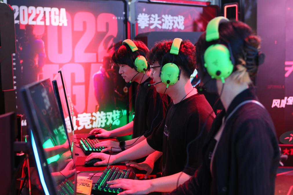 ↑7月28日,参观者在2023年第二十届中国国际数码互动娱乐展览会上腾讯游戏展台体验游戏《无畏契约》。