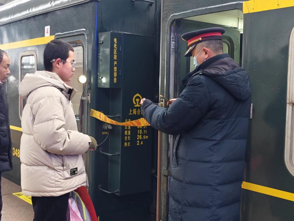 2月1日,小宣检票上车。新华社记者 陈诺摄