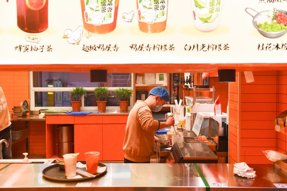 2024年2月4日,在长沙市天心区裕南街街道的东瓜山夜市美食一条街,员工在制作饮品。新华社记者陈泽国 摄