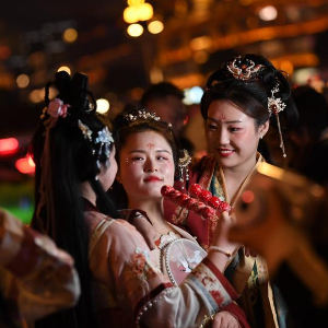 在位于山东省枣庄市的台儿庄古城,社火巡游、中幡舞狮、火龙钢花、花灯演艺等各种各样的文旅活动烘托出浓浓年味,春节假期累计接待游客量逾85.27万人次。景区负责人介绍,汉服租赁颇受欢迎,很多游客穿上汉服、唐装,乘船、走秀、拍照打卡,沉浸式游玩。