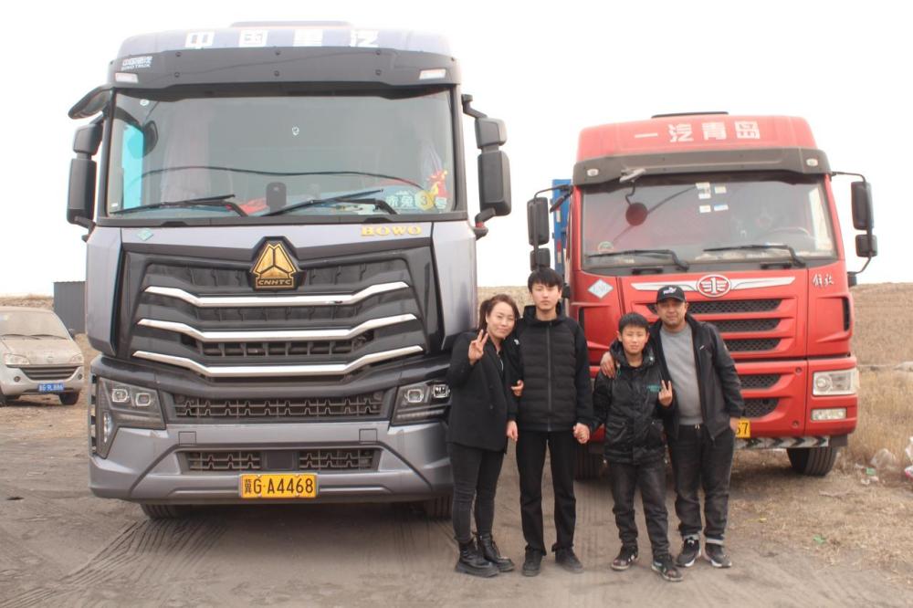 李润兰一家人与自家卡车合影(2月2日摄)。新华每日电讯记者蒋彤摄