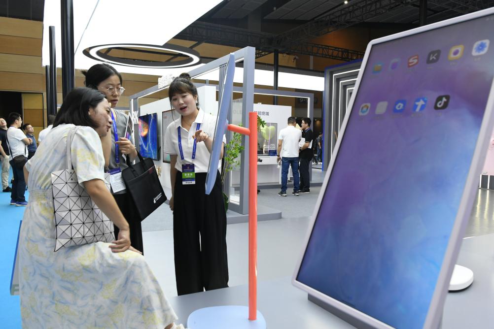 参观者了解“四川造”新型显示产品。新华社记者唐文豪 摄