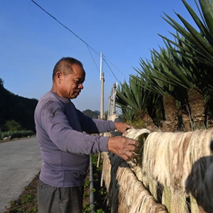 记者从广西平果市旧城镇康马村的山头眺望,漫山遍野的剑麻蓬勃生长,附近山头几乎看不到裸露的地块。不少村民在收割剑麻叶,拉到不远处的剑麻制品厂处理。曾经怪石嶙峋的荒山,如今从石头缝里焕发生机,长出助力村民增收的“摇钱树”。“剑麻耐旱耐贫瘠,十分适宜在石漠化山区生长,既能固土保水,又能带来经济效益。目前,全镇已种植2.5万亩剑麻。”旧城镇镇长王道维说。