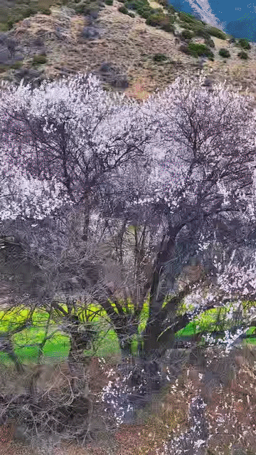 雪山之下、峡谷之间,成片的桃花林绵延至河谷山川,蔚然成粉海,游客纷纷闻香而来。