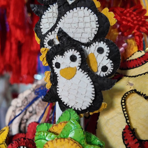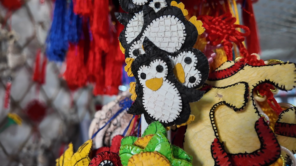 企鹅样式的鱼皮冰箱贴。新华社记者 丁赫 摄