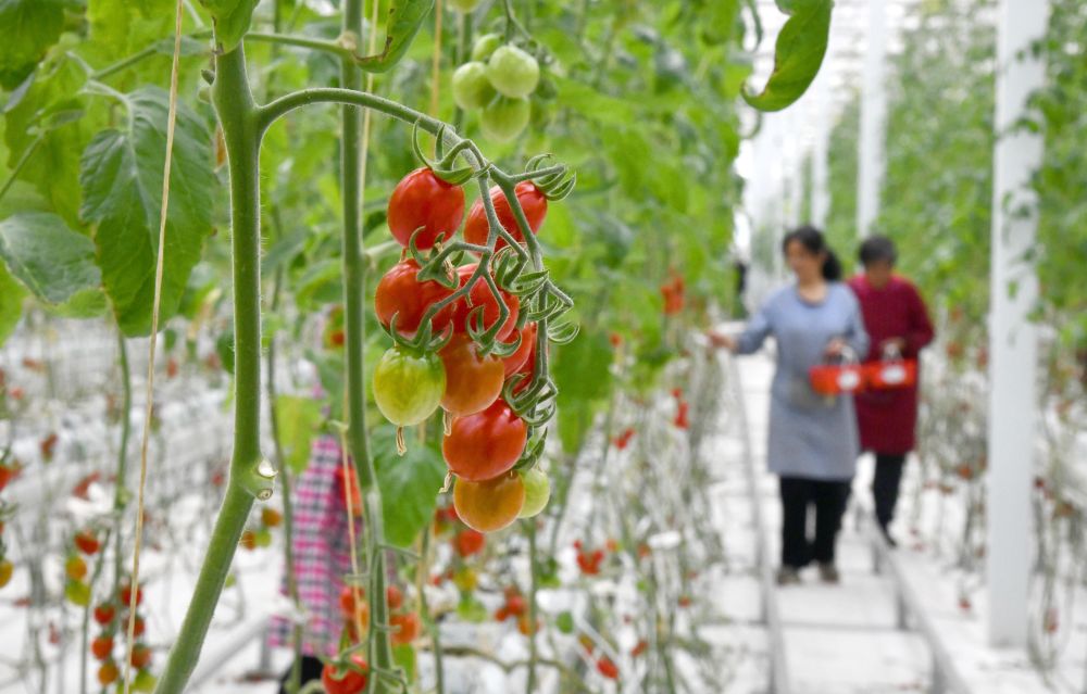 山东省济宁市兖州区,智能温室大棚里西红柿进入成熟期(2024年3月13日摄)。新华社记者 徐速绘 摄