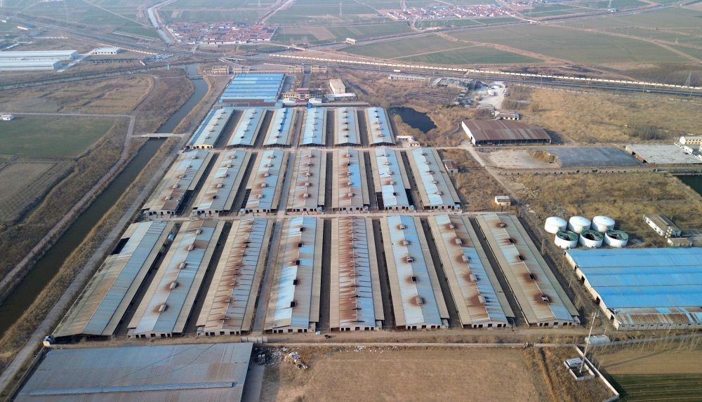 位于山东省淄博市高青县的山东纽澜地何牛食品有限公司养殖场(2024年3月15日摄,无人机照片)。新华社记者 徐速绘 摄