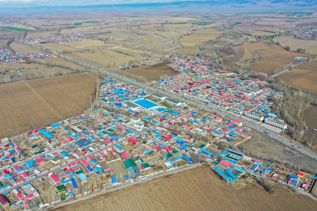 这是4月10日拍摄的新疆博尔塔拉蒙古自治州博乐市青得里镇定吉格村(无人机照片)。新华社记者 丁磊 摄