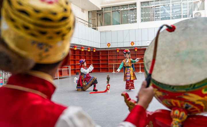 藏戏小演员排练剧目《苏吉尼玛》。新华社记者 丁增尼达 摄