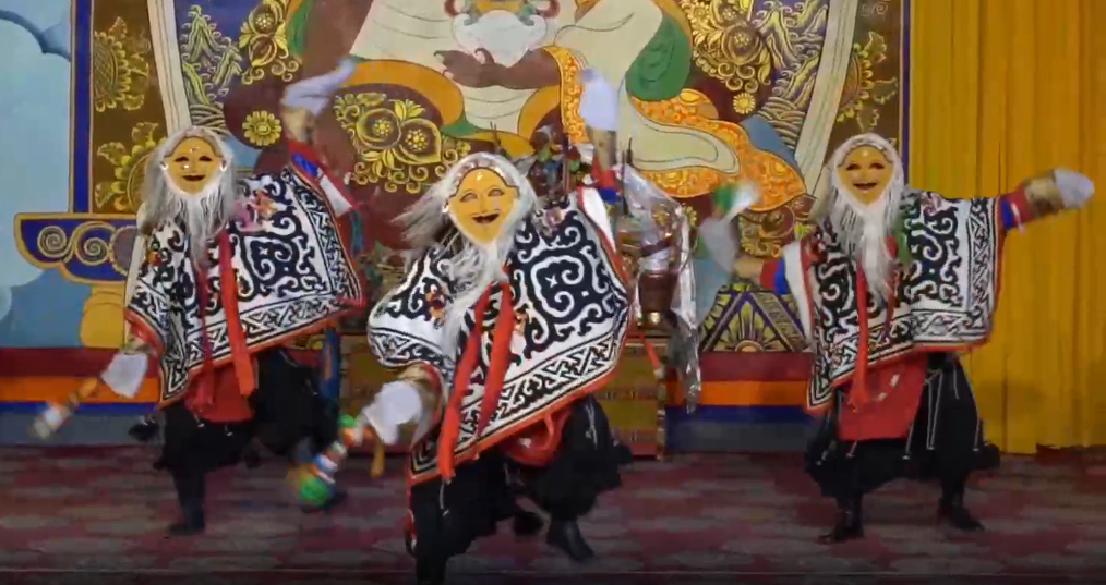 传统藏戏的服装从头到尾只有一套,演员无需化妆,主要是戴面具表演。整体上看,藏戏分为白面具戏和蓝面具戏。在同一台藏戏中,又会出现红、白、蓝、黑、黄等不同颜色面具,代表不同身份。“比如蓝色面具代表猎人,黄色面具代表高僧、官员等。”尼玛次仁说。以戴黄色面具为主的扎西雪巴是白面具藏戏的杰出代表。