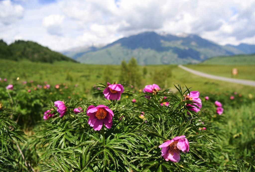 新疆阿勒泰地区喀纳斯景区禾木村绿草如茵,山花烂漫,景色宜人。新华社记者 沙达提 摄