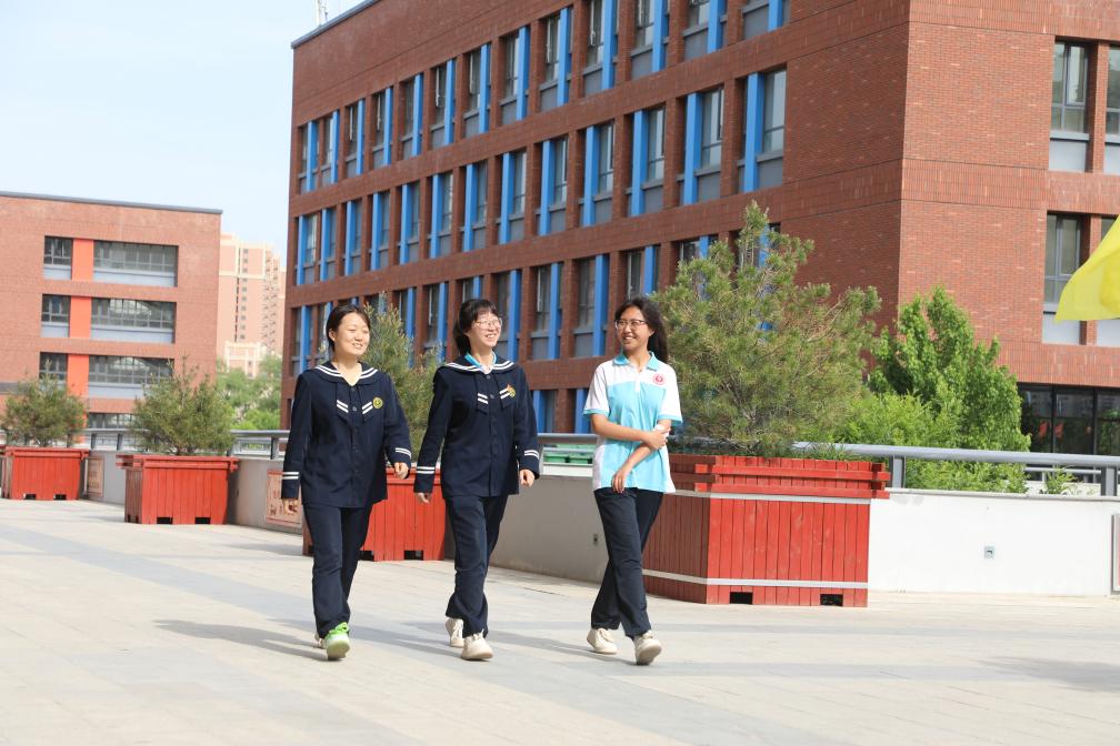 郭嘉龄(左一)和同学一起在平凉市第一中学的校园里散步。新华社记者 张智敏 摄