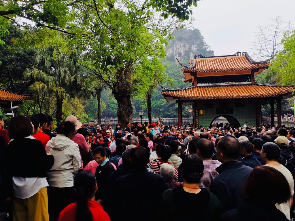 来自哈尔滨的游客吴女士来柳州旅游,特意到鱼峰公园打卡,“除了品尝地道螺蛳粉,还必须实地感受对唱山歌的盛况。”吴女士站在围观歌队的人群中,不时拿起手机记录。