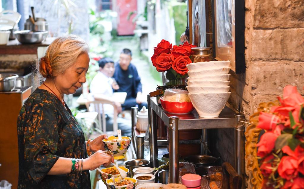 山城巷老居民周英碧在家门口售卖特色小吃。新华社记者王全超 摄