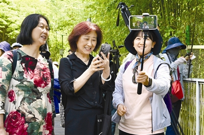 韩国游客“浪漫Cindy”(化名)(右)与中国游客合影