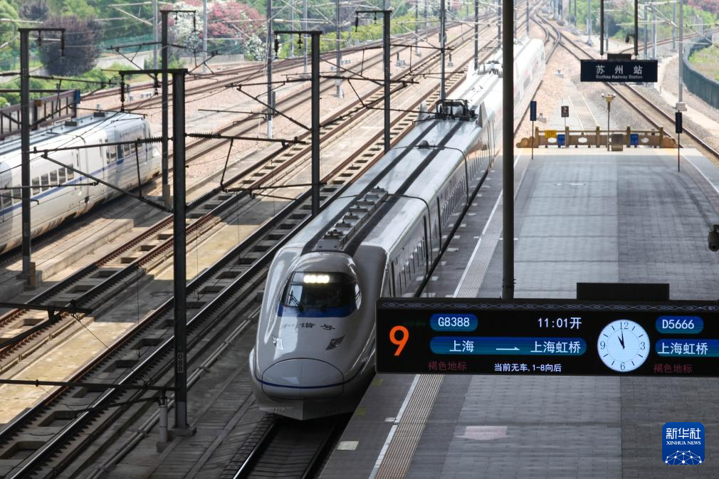 新华社上海6月15日电(记者贾远琨、狄春)6月15日,G8388次列车从上海站发出,途经长三角19个站点后,回到上海虹桥站,实现长三角“环线”运营。这是首列连接长三角一市三省的超级“环线”列车。