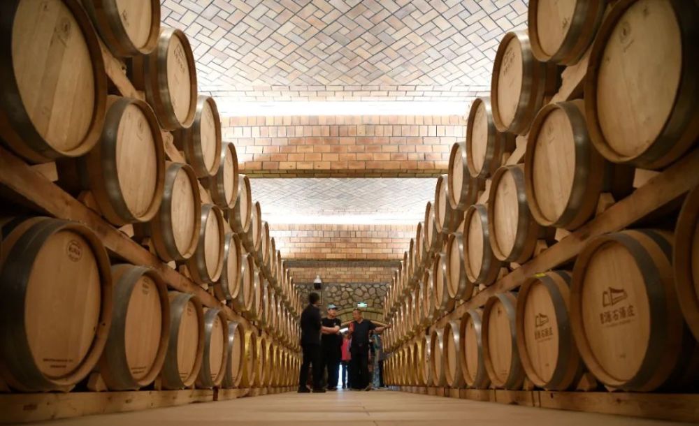 在位于贺兰山东麓的志辉源石酒庄,游客在酒窖参观游览。新华社记者 王鹏 摄