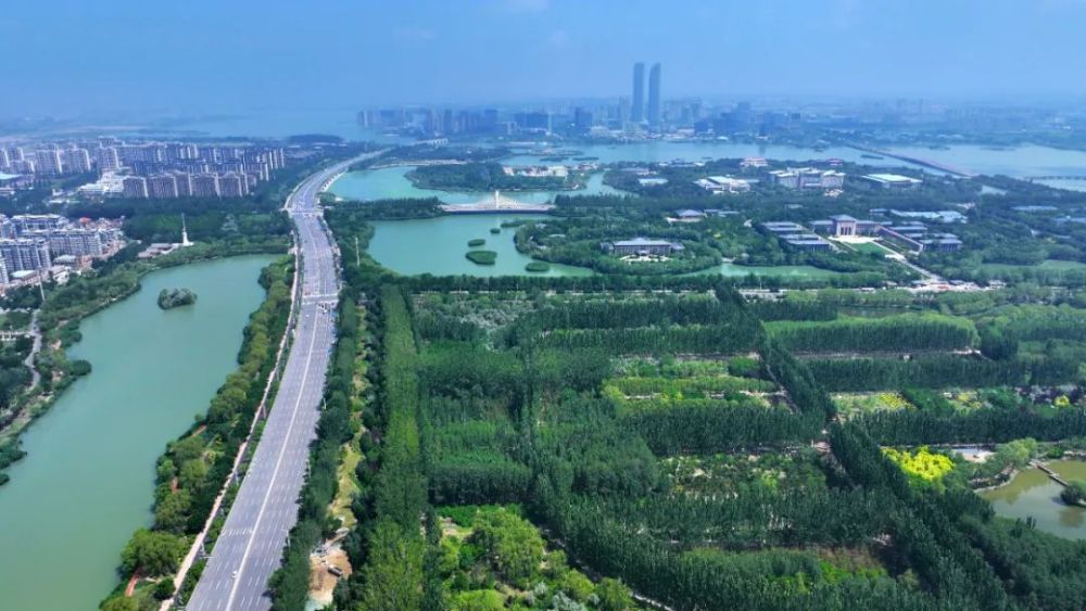 这是宁夏银川市典农河(无人机照片)。新华社记者 王鹏 摄