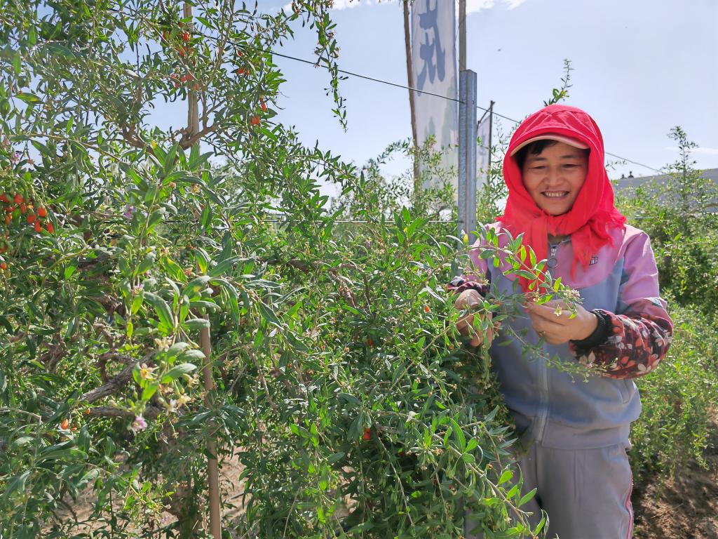 胡玉柱家住宁夏中宁县鸣沙镇五道渠村,她的家乡中宁县是国务院命名的“中国枸杞之乡”。眼下正值宁夏枸杞采摘季,她和工友们每天最重要的工作就是在鸣沙镇玺赞生态枸杞庄园采摘枸杞鲜果,这些鲜果随后将被制成枸杞干果、锁鲜枸杞和枸杞原浆等不同产品出售。
