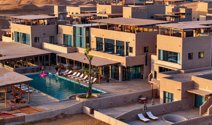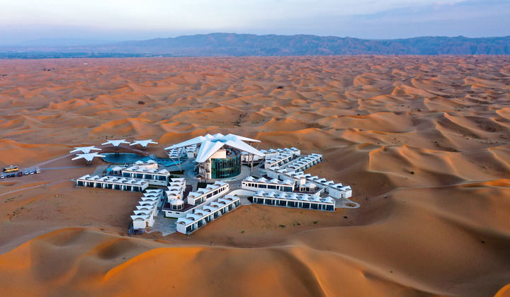 他曾经喜欢给外国游客讲沙漠里海市蜃楼的故事——他并未亲眼见过,只是听老一辈人说起。20多年前,他在迪拜看到沙漠里林立的酒店集群,内部设施豪华舒适,人在其中既能感受沙漠之美,又能免受日晒之苦。他意识到,“海市蜃楼”可以成为现实。