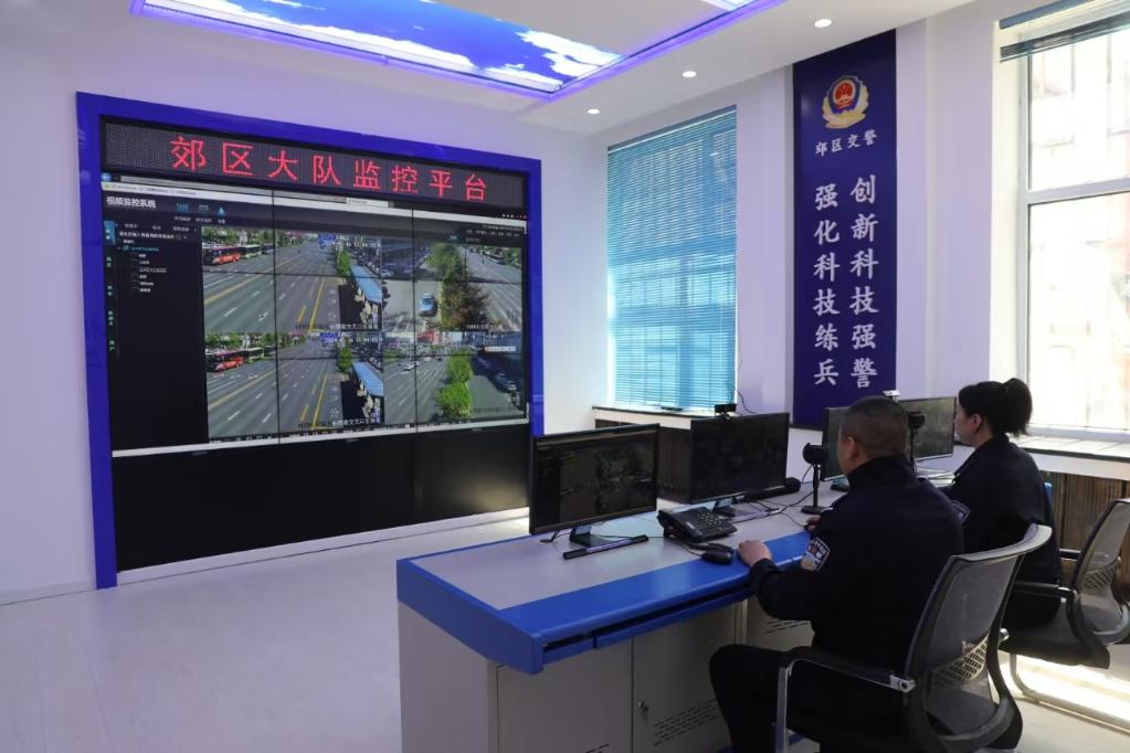图为民警通过视频监控线上处理交通事故。(黑龙江省公安厅供图)