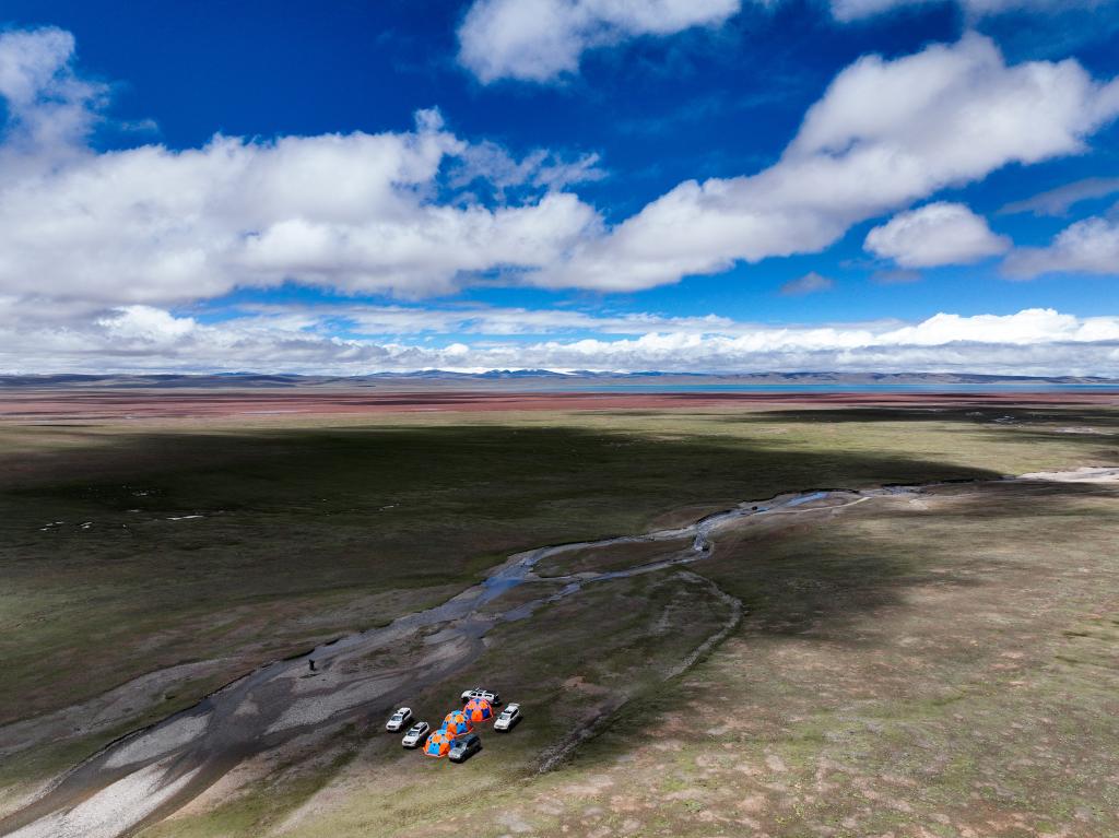 这是7月8日在可可西里卓乃湖区域拍摄的营地。新华社记者 张龙 摄