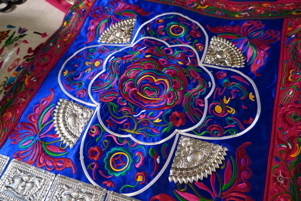 游客还能在侗寨看到侗族文化的与时俱进。覃桂珍正将侗绣嵌入项链、戒指、耳环等饰品和时尚背包等物件中,在西服和旗袍等服饰上织入的侗绣元素也受到各族年轻人乃至国外游客的喜爱。