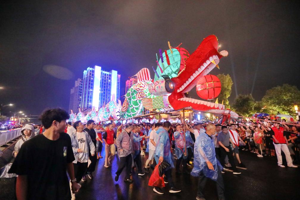 “非遗奇妙夜”活动中的连城姑田游大龙表演。(受访者供图)