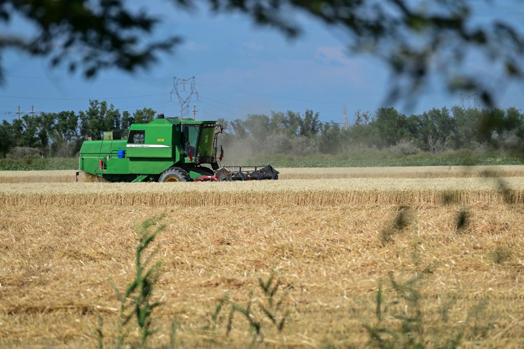 在新疆昌吉回族自治州奇台县西地镇,农户在田间收获小麦(7月9日摄)。新华社记者 丁磊 摄