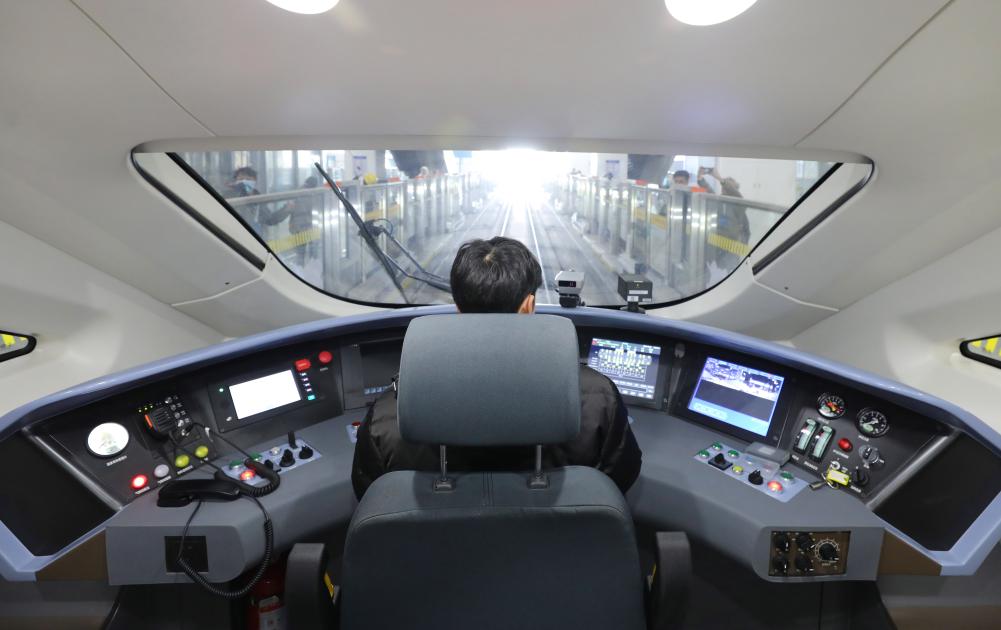 12月20日拍摄的市域机场线列车驾驶室内景。新华社记者 方喆 摄