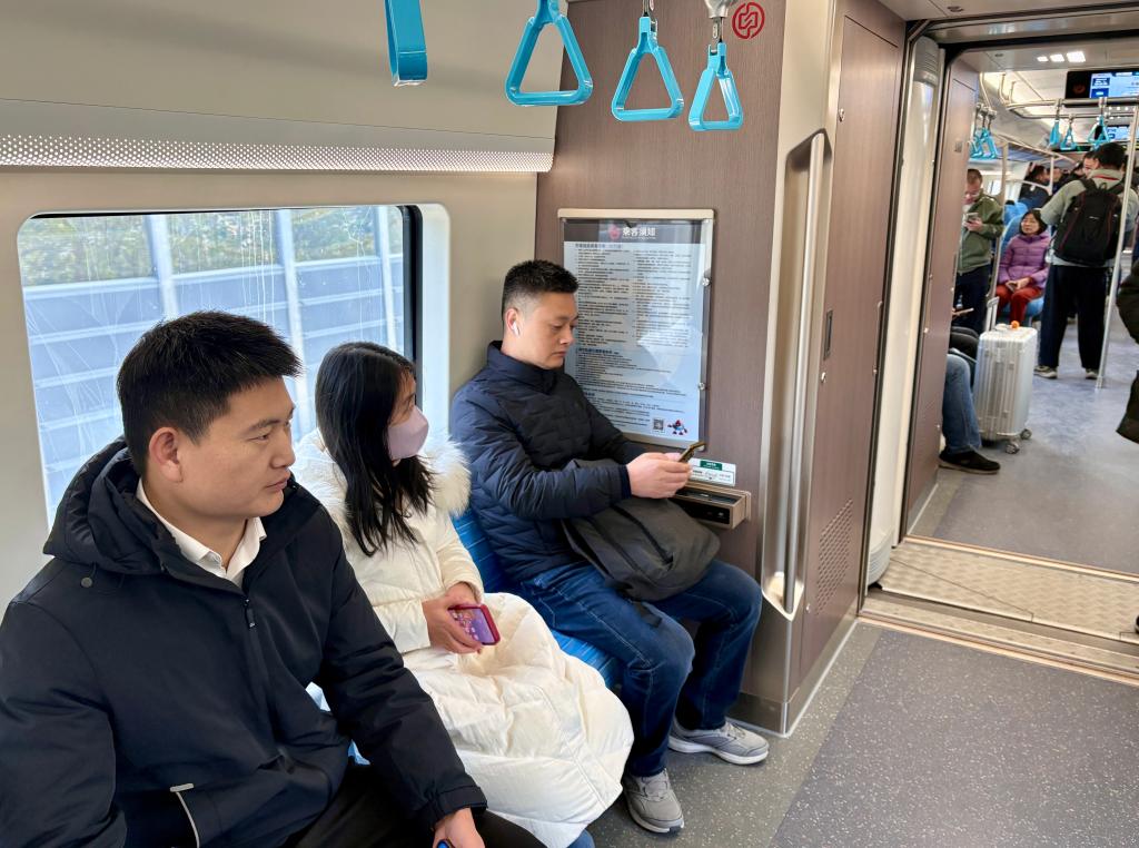 记者采访发现,市域机场线开通首日,车厢里已经有很多携带大件行李的乘客前往虹桥或浦东机场,还有外国游客的身影。市域机场线在2024年底开通,一方面为即将到来的2025年春运提供便利;另一方面,随着我国过境免签政策不断优化,将方便更多国际游客出行。