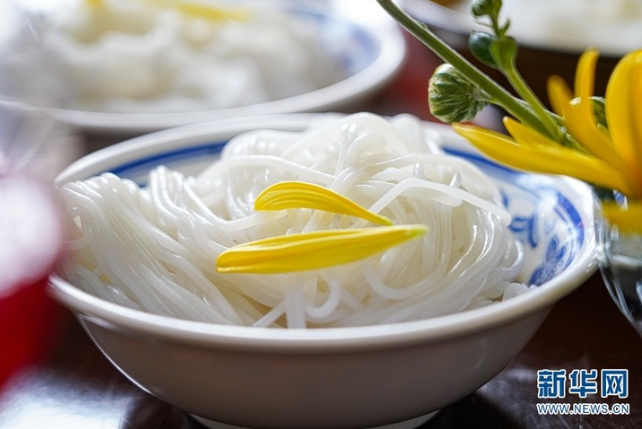 在蒙自市雨过铺街道花卉种植基地,大棚里种植的食用菊花竞相绽放。金黄色的菊花作为过桥米线配料,不仅供应蒙自市内米线店,还销往云南省内外多个城市。据了解,雨过铺街道现有菊花规模超过600亩,食用菊花亩产值能达到4万元左右,除了用于过桥米线,还被加工为花茶、花酒,成为当地群众增收的渠道之一。