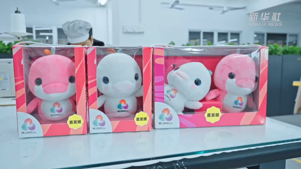 在广东中山一家特许商品生产公司,第十五届全国运动会吉祥物“喜洋洋”“乐融融”的毛绒玩具产品已经开始量产。