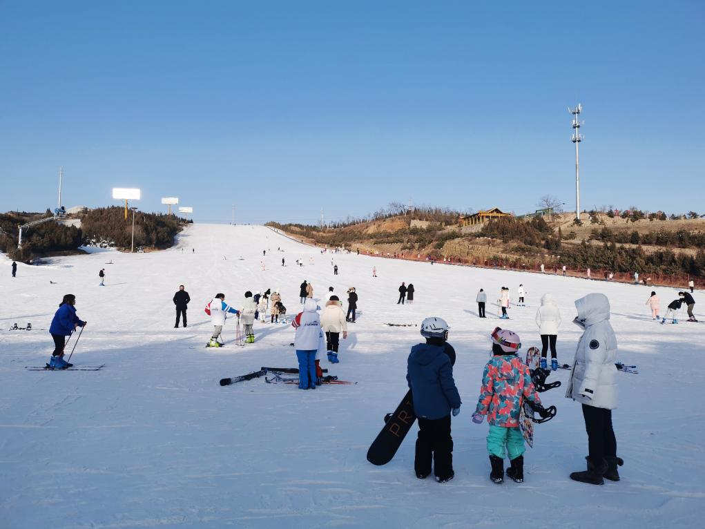 2023年1月25日,滑雪爱好者在山西省太原市九龙国际滑雪场滑雪。新华社记者 解园 摄