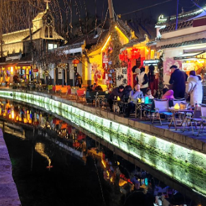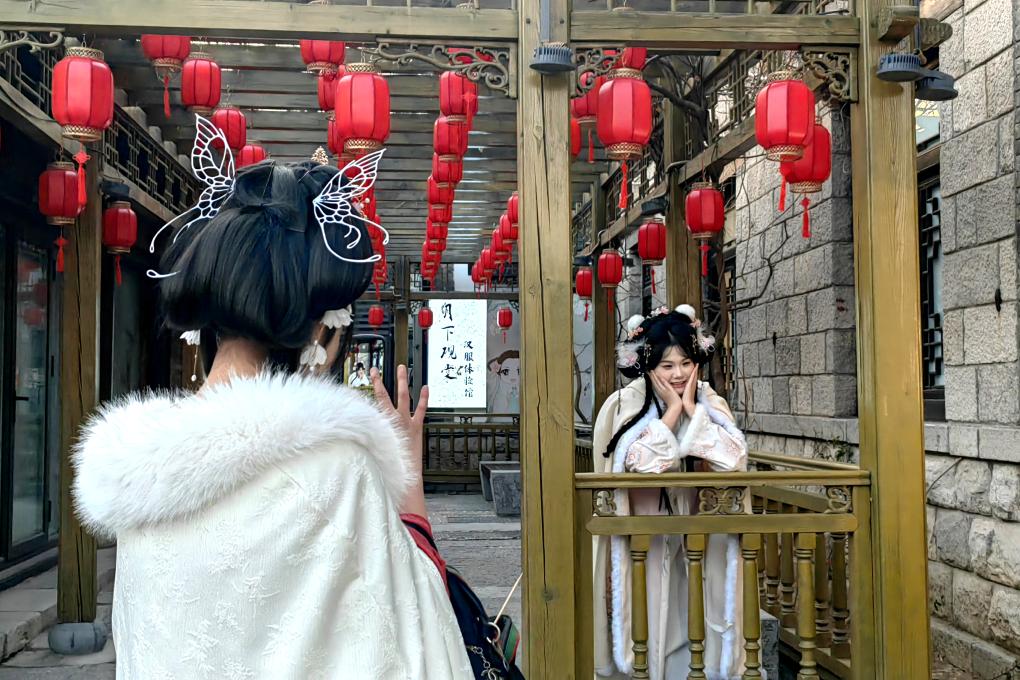 传统工艺工作站、泉水人家民俗博物馆、白雪楼非遗剧场等文化单元,和以非遗、文创、民俗为主的30个特色摊位形成的文化市集,共同汇成了百花洲活色生香的文化风景。行走在曲径通幽的青石窄巷,穿越古雅别致的院落亭台,不时要给行人和相机让路。这里处处可见身着汉服的年轻女孩,就着街巷、影壁等天然相框取景拍照,或拍摄短视频。