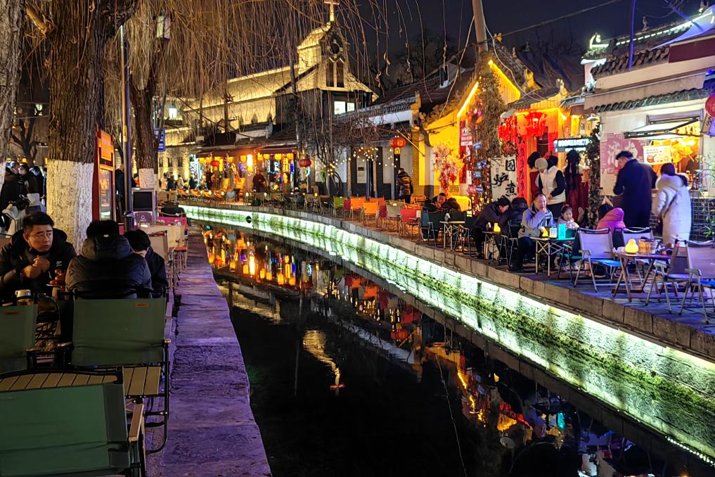 2月10日,游客在济南百花洲消费游玩。新华社记者陈灏 摄