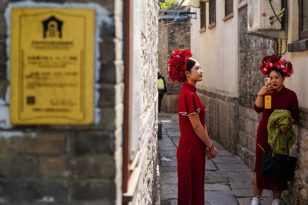 游人在济南曲水亭街游玩(2024年4月5日摄)。新华社记者 朱峥 摄