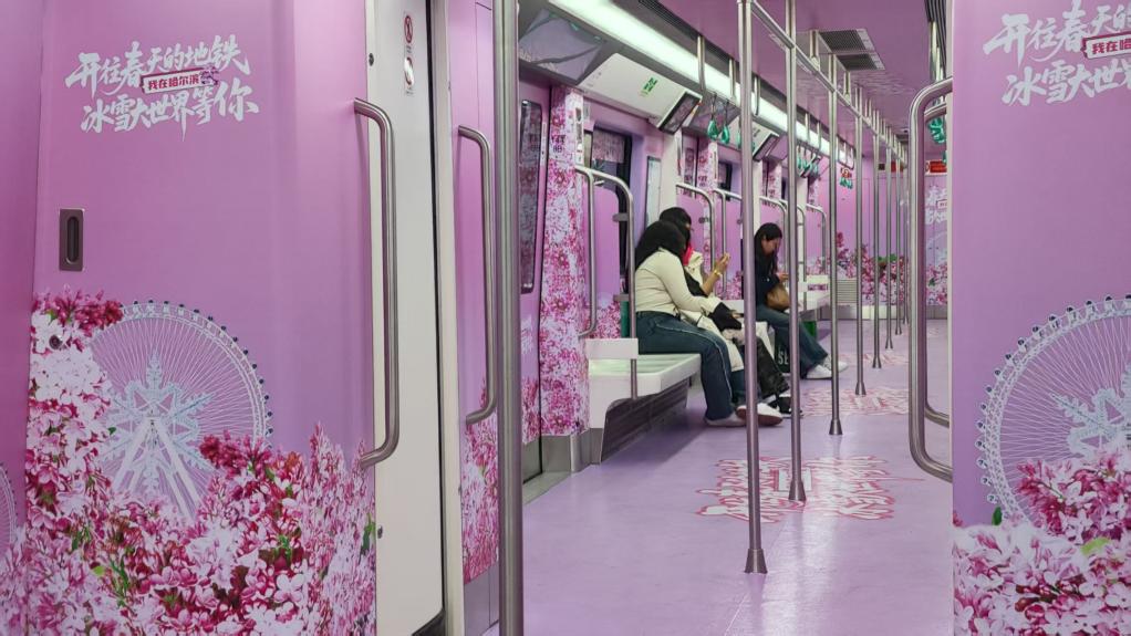 为迎接丁香季和春夏旅游季的到来,哈尔滨冰雪大世界专属打造的丁香主题地铁车厢5月1日正式与游人见面,将冰雪文化与城市特色完美融合,成为满载冰城浪漫的移动艺术空间。