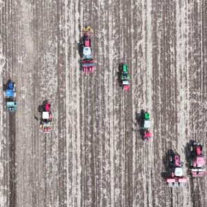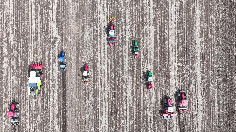 俯瞰辽宁铁岭清河区张相镇农田春耕场景。(受访者供图)