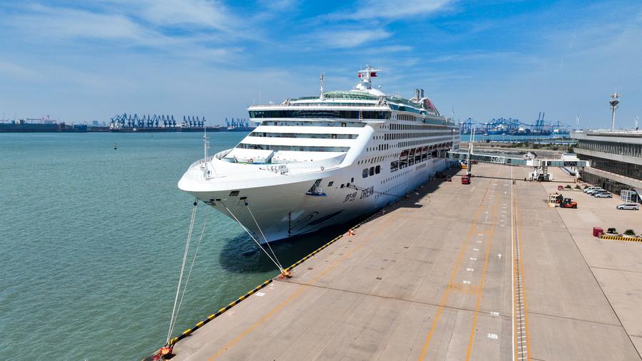 新华社天津5月16日电(记者张宇琪)5月15日上午8时许,“梦想”号邮轮载运2000余名旅客缓缓靠泊天津国际邮轮母港。