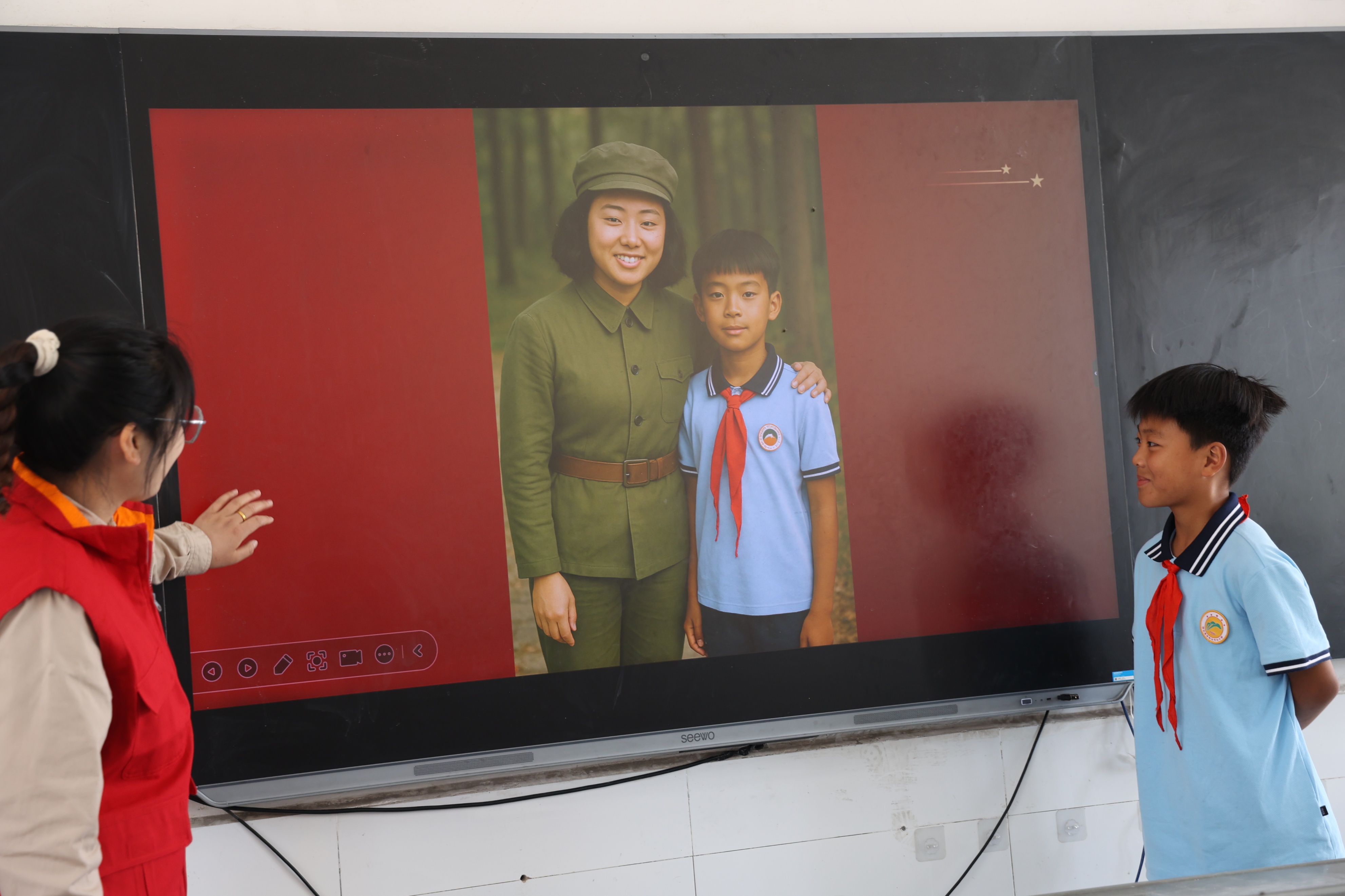 “这是我和高赞非爷爷的AI合影!”四年级学生于一诺举着照片欢呼雀跃,照片里的她依偎着AI复原的战士高赞非,背景是还原的抗日战场旧址。服务队队员介绍,这些合影将制作成纪念册,让孩子带回家留念。