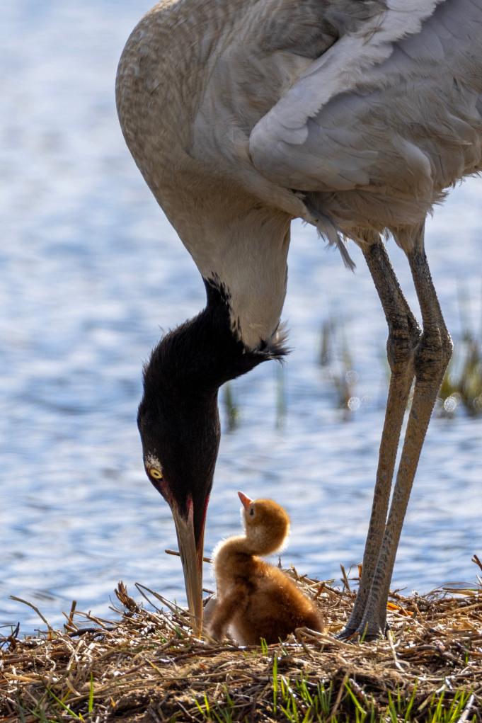 图片中的这对黑颈鹤夫妇已连续8年在那曲市申扎县申扎藏布湿地营巢育雏,并受到了普遍关注,每年都有摄影师前往拍摄。2024年,我们拍到了它们孵蛋的画面。后来听当地野保员说,孵出的小鹤在两个多月大的时候不幸夭折,这突如其来的打击使得雌鹤抑郁了很长时间,有时会无缘无故地攻击配偶,有时还会拔掉自己的尾羽,曾经形影不离的夫妻俩很长时间不窝在一起休息……幸运的是,如今的它们已走出悲伤。2025年6月4日,我们又拍到了它们雏鸟出壳的瞬间,如今,新出生的小家伙正在茁壮成长。