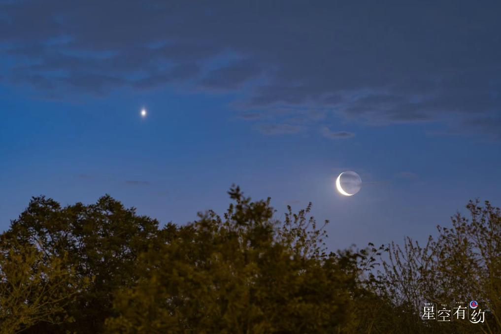 2025年4月25日凌晨在北京亦庄拍摄的金星伴月。(马劲 摄)