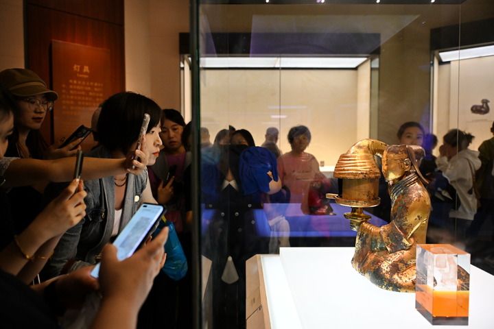 10月5日,游客在河北博物院内参观。新华社记者 牟宇 摄