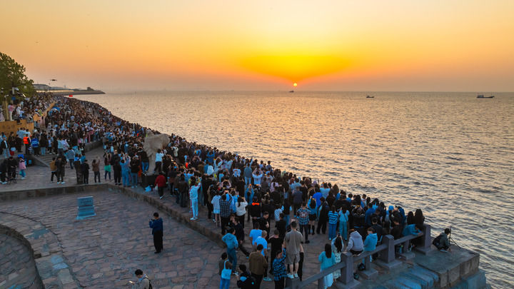 而当作家余华说出“最美的日出就在海盐”时,在海盐鱼鳞海塘圩堤上,顿时涌入成千上万的游客。只为看余华笔下“最美日出”的安徽游客汪蓉近期专程来到海盐旅游,“我是余华老师的粉丝,不同于山间日出的壮丽,站在古海塘圩堤上看日出,遥想人与海的岁月搏斗史,感觉很特别”。
