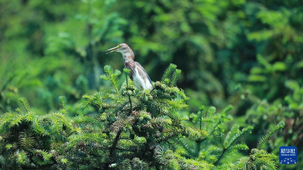 7月8日在湖南省永州市蓝山县塔峰镇雷家岭村拍摄的池鹭。 新华社发(唐盛利 摄)